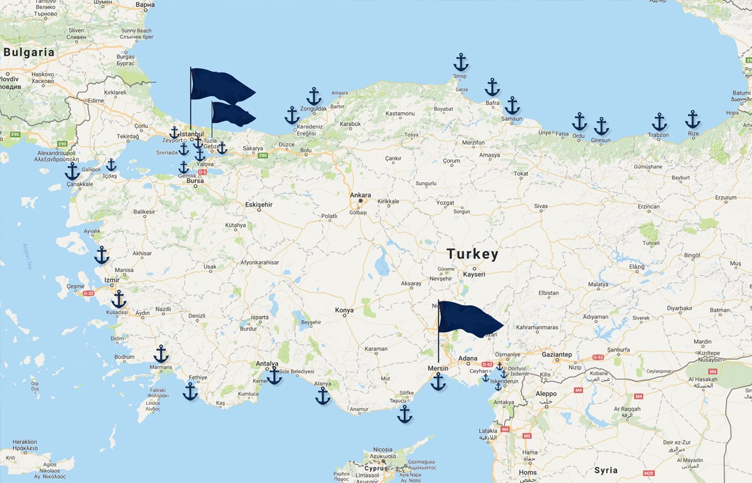 The Republic of Turkey, referred as Turkey, is a country spanning two continents on the Eurasian continent, bordering the Black Sea in the north and the Mediterranean Sea in the South, nearing Syria and Iraq in the Southeast, Aegean Sea in the West, Greece and Bulgaria, and Georgia, Armenia, Azerbaijan and Iran in the East.
